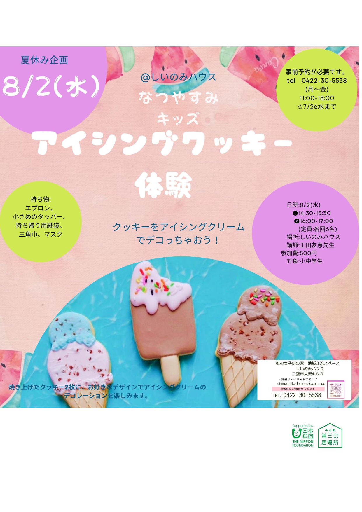 2022年度椎の実子供の家地域交流スペース しいのみハウス 子どもの居場所作り チラシ・ポスター等