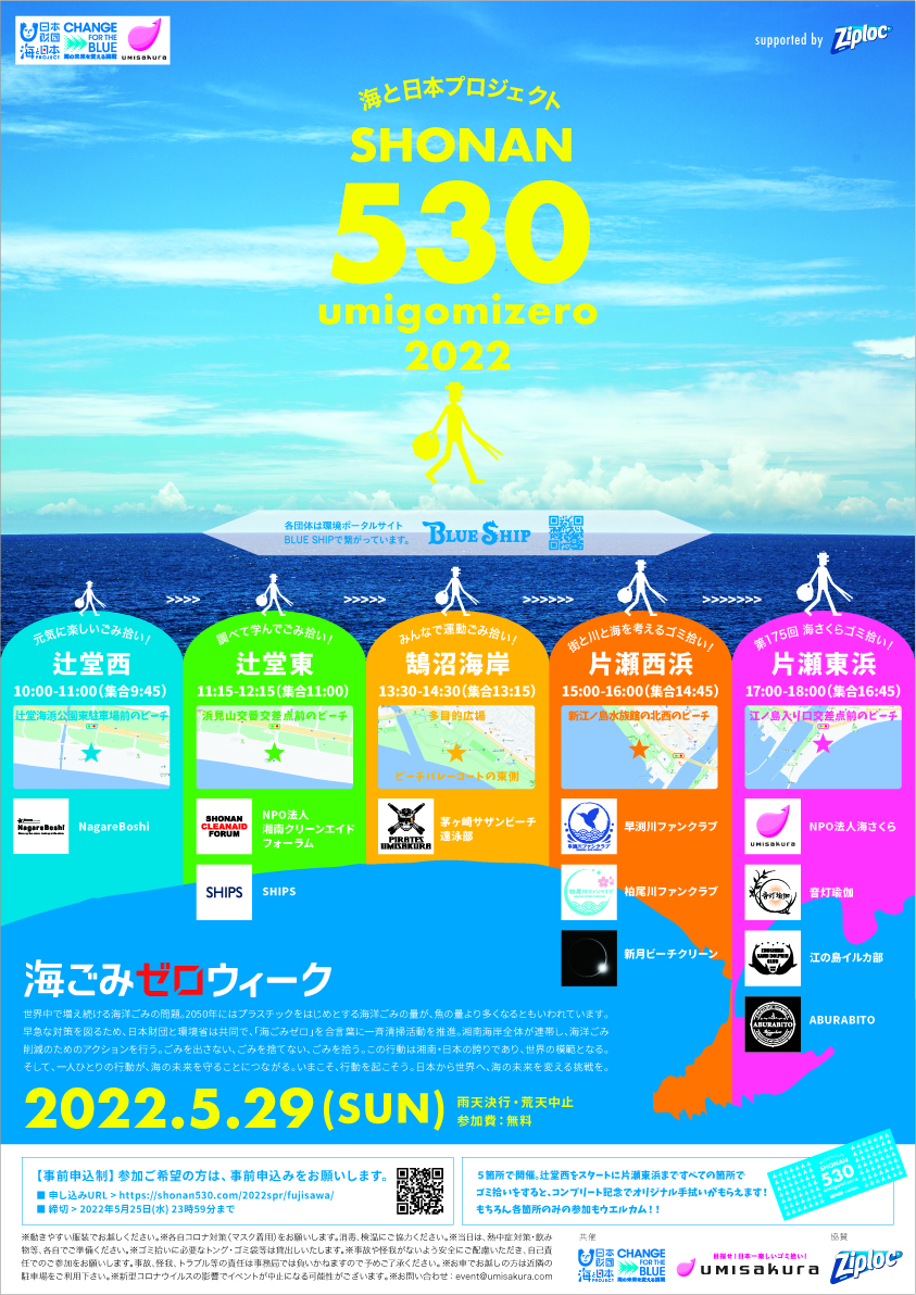 2022年度海のごみ拾いの拠点化推進および一斉清掃活動イベントの開催(CFB・海と日本2022) A3二つ折りチラシ SHONAN530宣伝用