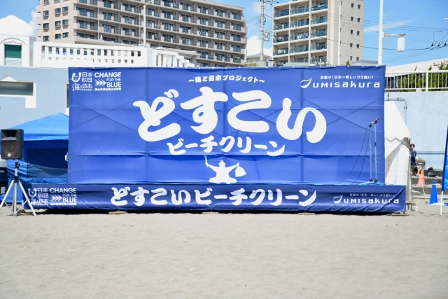 2022年度海のごみ拾いの拠点化推進および一斉清掃活動イベントの開催(CFB・海と日本2022)どすこいビーチクリーン ステージ幕(背面)
