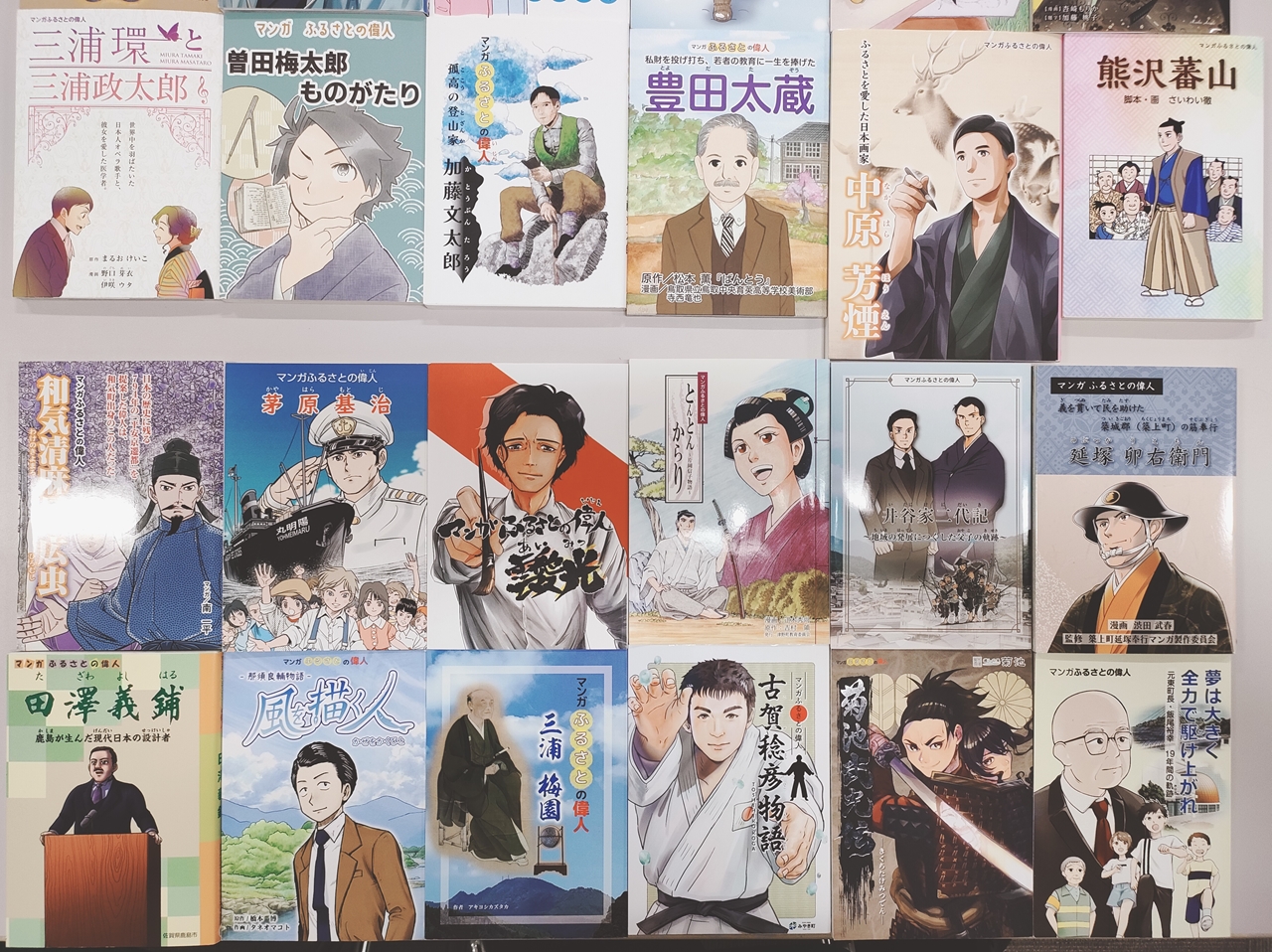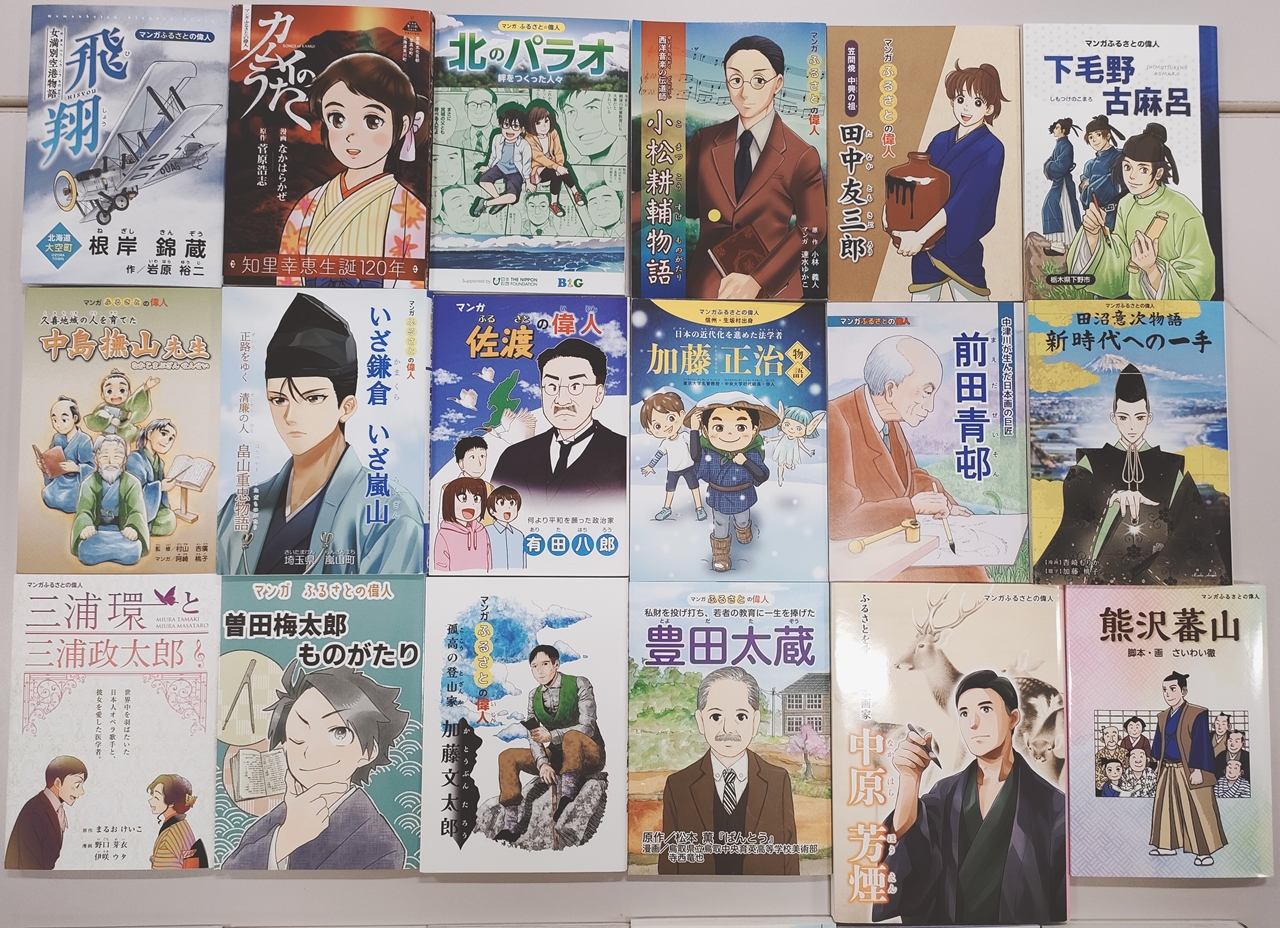 2021年度に製作した「ふるさとの偉人マンガ」です。完成したマンガは、各自治体で児童生徒などに配付され、学校授業などで「郷土学習」や「キャリア教育」の教材として活用されました。さらにマンガは、学校教育だけでなく地域住民を対象とした文化セミナーの教材、偉人の記念館などで観光客への周知など、偉人を地域の財産として地域の活性化にも一役買っています。