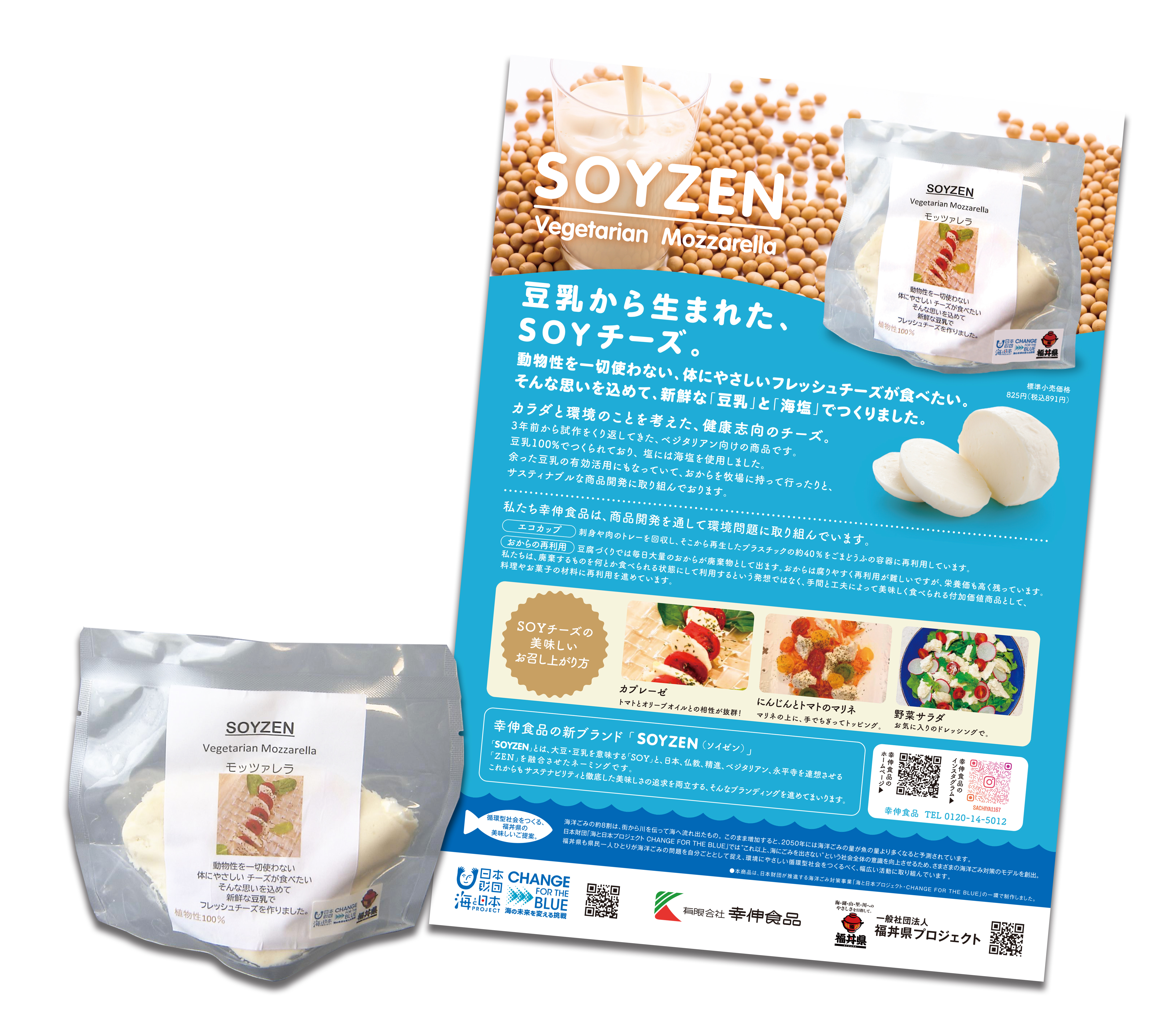 (2)開発プロダクト(SOYチーズ) (3)教材(出前授業学習ノート) (4)ごみを利用した商品(鯖江市役所JK課オリジナルサングラス)、漁網をリサイクルした製品(漁網コースター) |