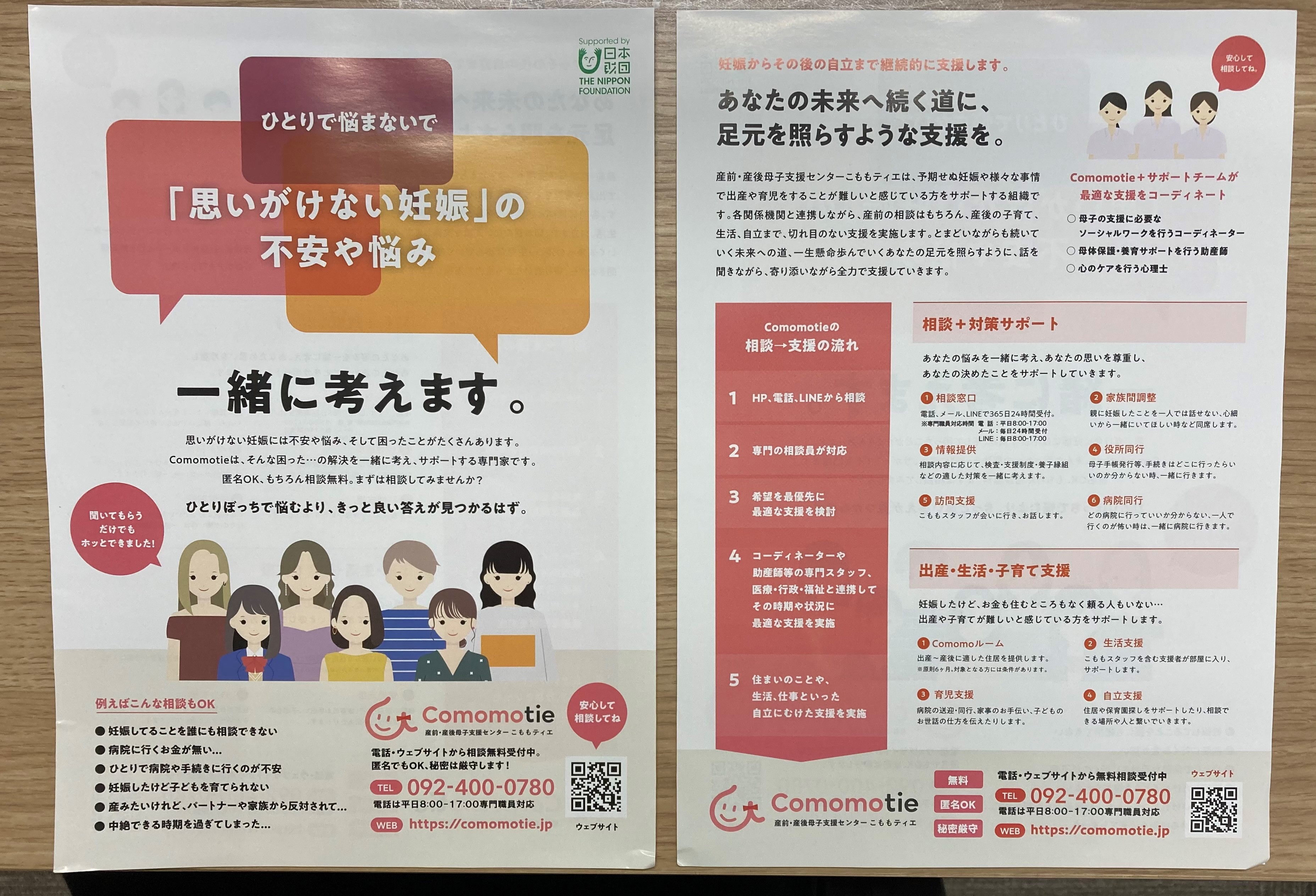 「産前・産後母子支援センターComomotie」が行っている事業内容について <具体的な内容> ・予期せぬ妊娠や思いがけない妊娠で悩んでいる人が、安心して相談できる相談窓口であること ・居場所の提供、生活支援、自立支援について |