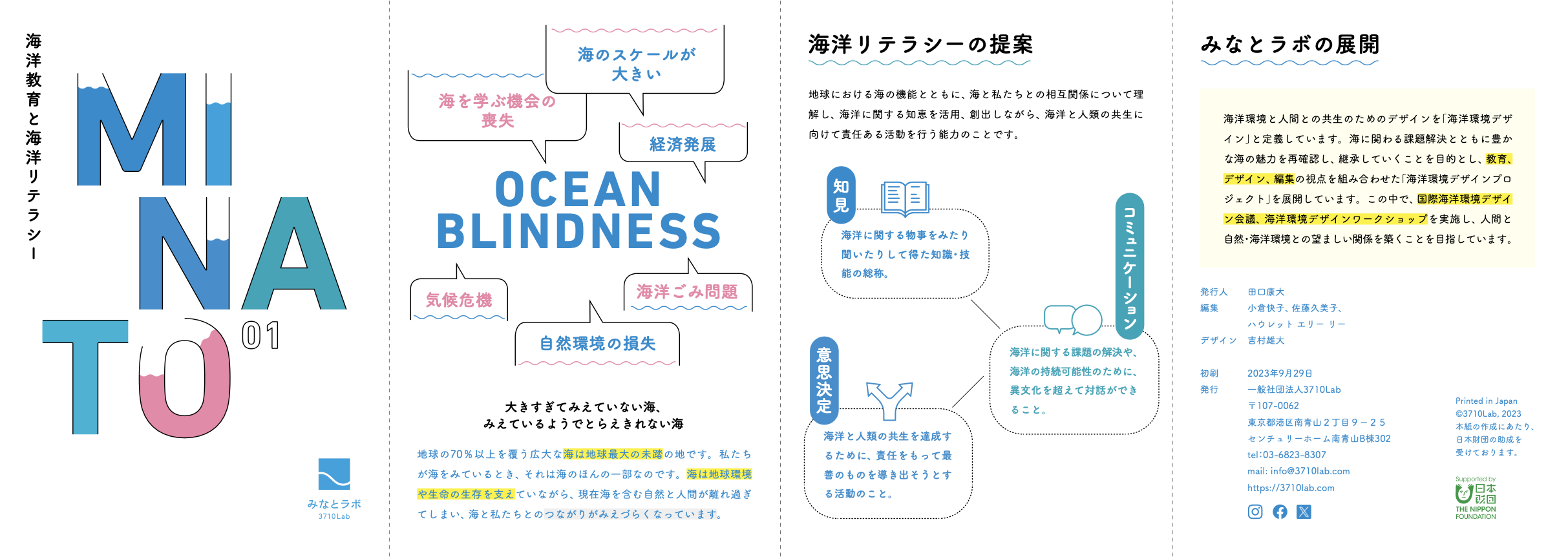 みなとラボの活動報告と共に、海洋教育や海洋環境デザインについての情報を発信する定期発行のニュースレター。VOL.0に続き、VOL.1を発行。テーマは海洋教育と海洋リテラシーについて。