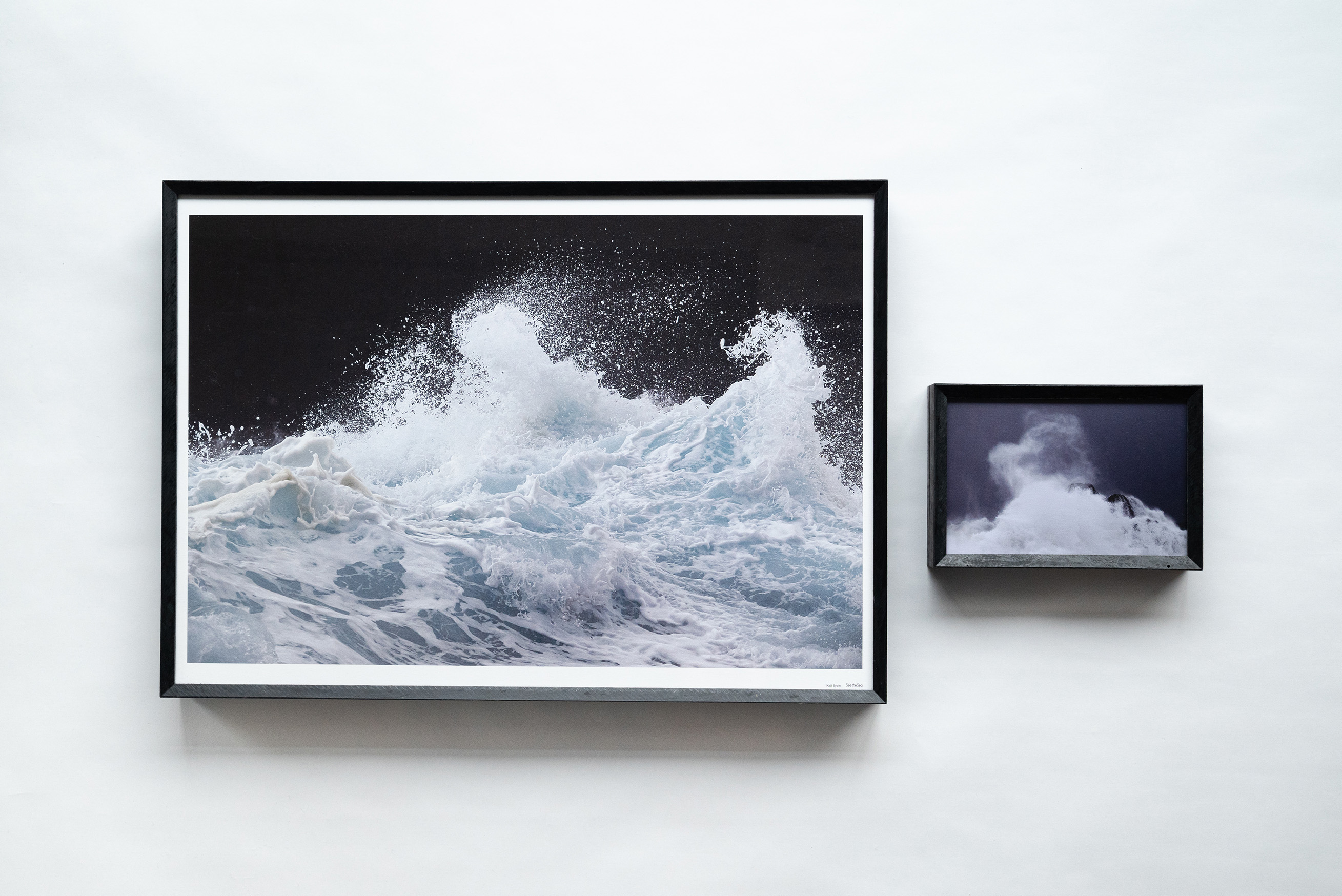 海洋環境に対してデザインでアプローチすることを目的に、デザイナーの北川大輔との協働で制作したフォトフレーム。漁業ロープでフレームを留める仕様で、三重県鳥羽市の漁業由来の海洋プラスチック(ブイ、漁網)を100%使用した板材を使用。棚や机の上などに自立また、壁掛けでも使用可能。