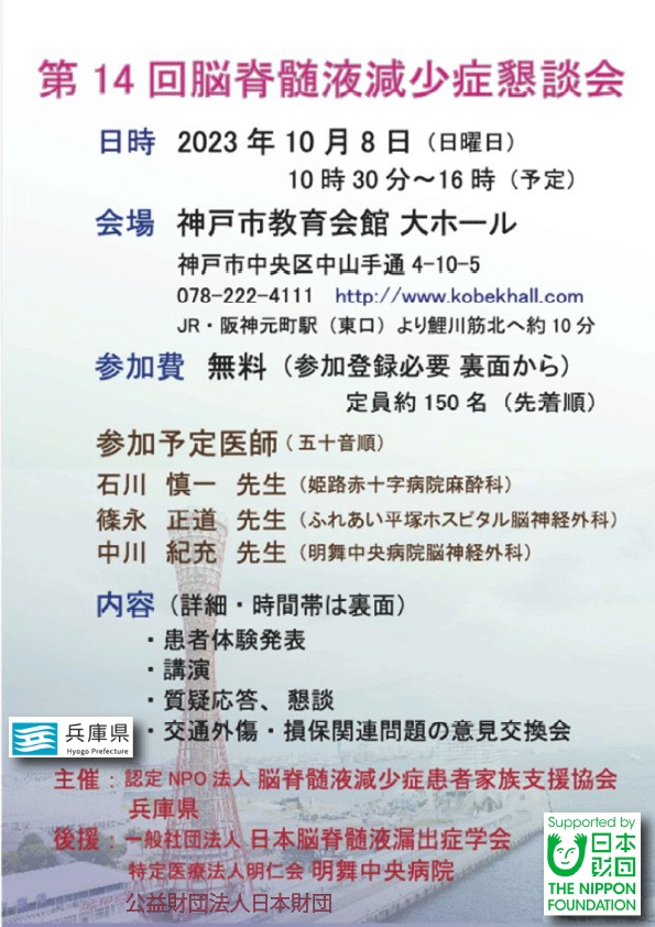 2023年度 事業報告兵庫県 脳脊髄液減少症シンポジウム