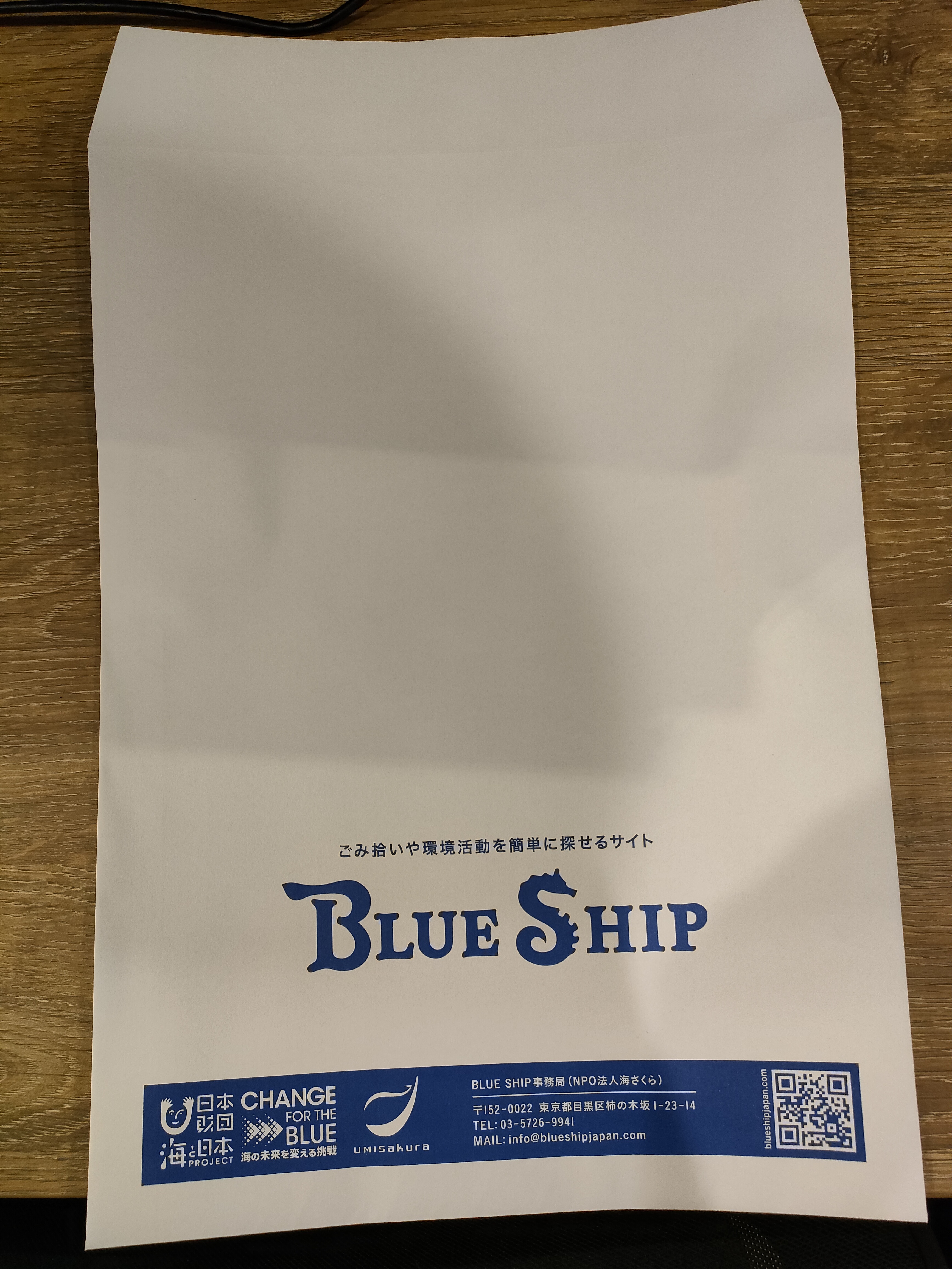 2024年度ごみ拾い・環境イベントポータルサイト「BLUE SHIP」(CFB・海と日本2024)封筒 ピンバッジ・ステッカー発送用