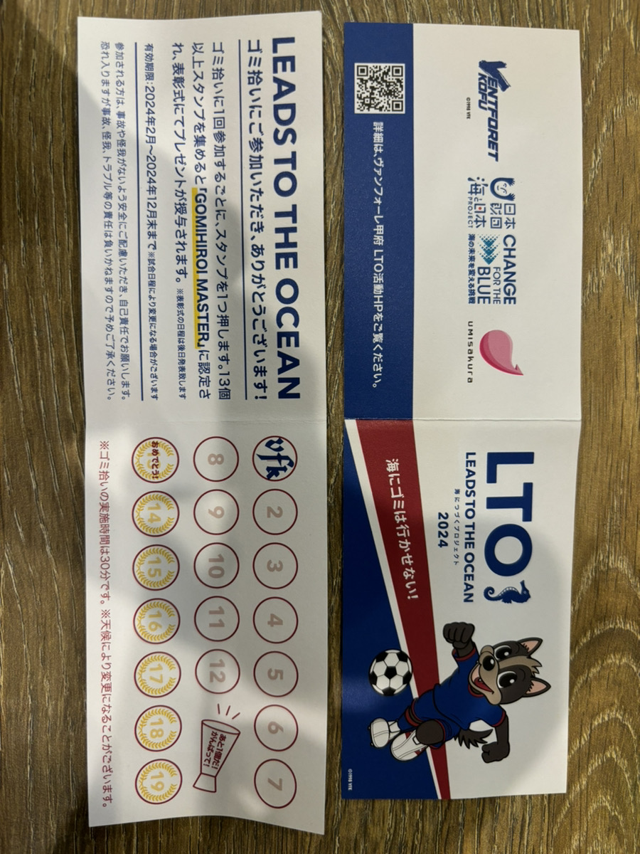 2024年度LEADS TO THE OCEAN~海につづくプロジェクト~(CFB・海と日本2024)スタンプカード(ヴァンフォーレ甲府)