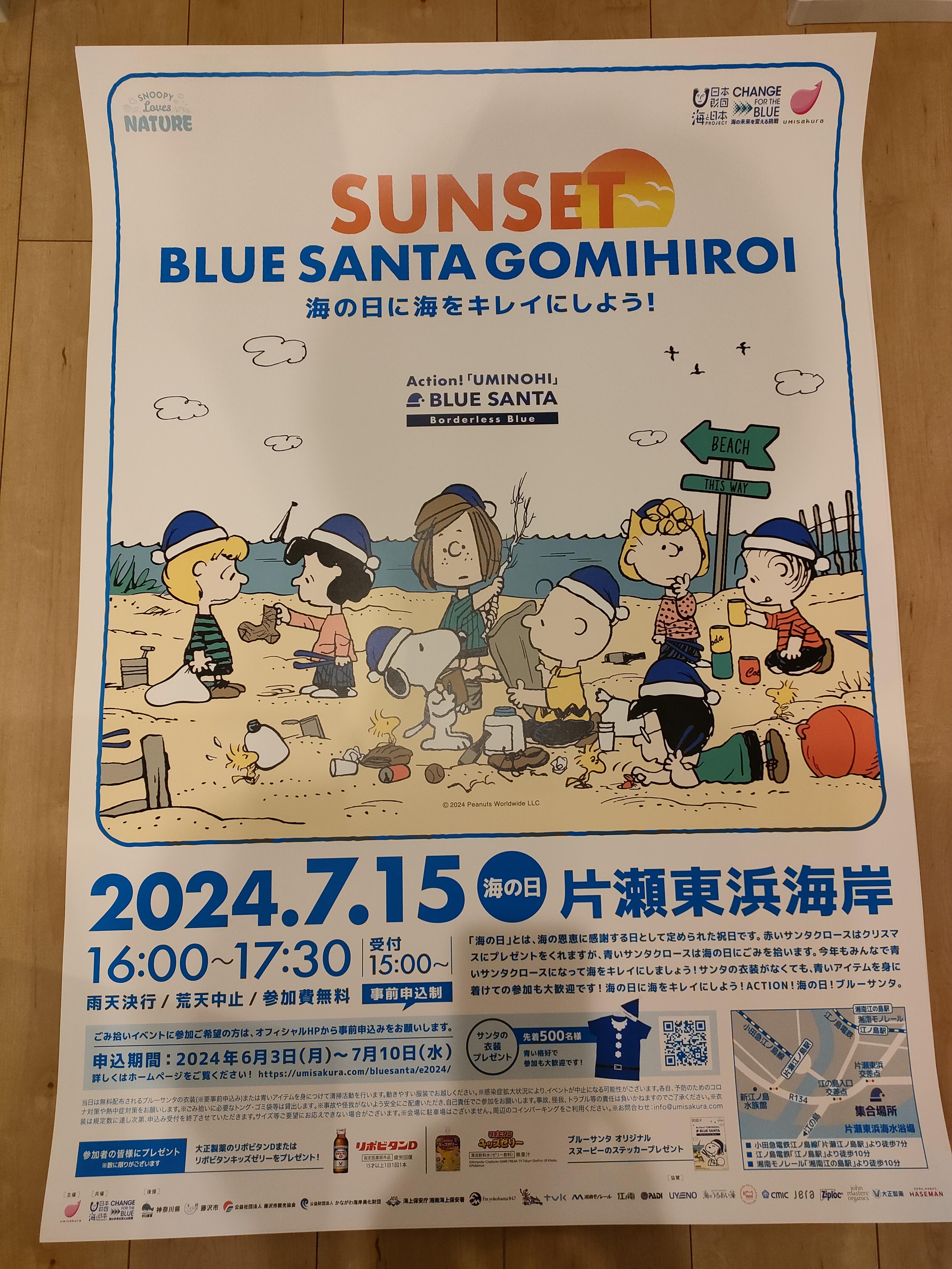 2024年度海のごみ拾いの拠点化推進および一斉清掃活動イベントの開催(CFB・海と日本2024)BLUE SANTA B1ポスター(PEANUTS)