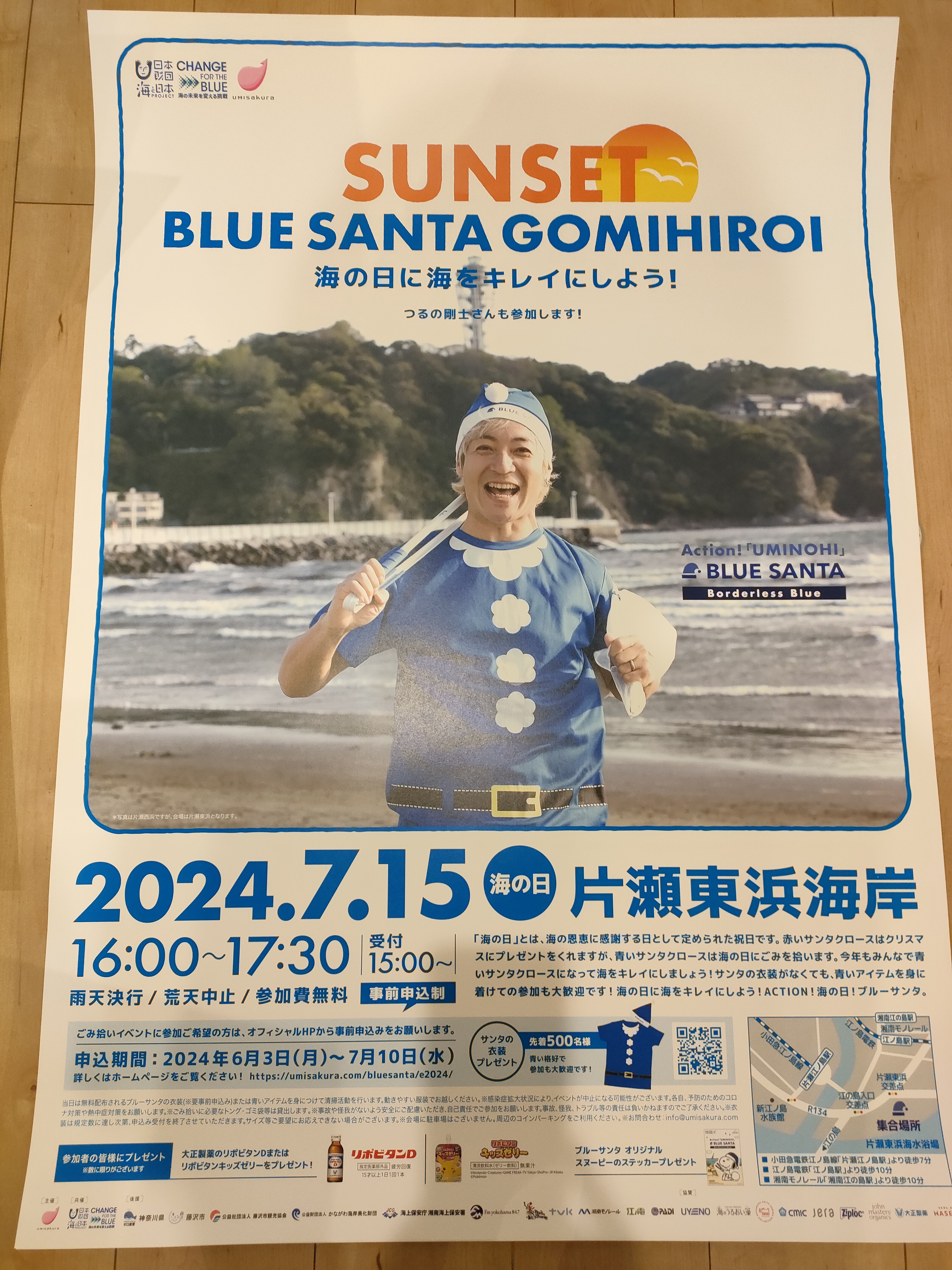 2024年度海のごみ拾いの拠点化推進および一斉清掃活動イベントの開催(CFB・海と日本2024)BLUE SANTA B1ポスター(つるのさんA)