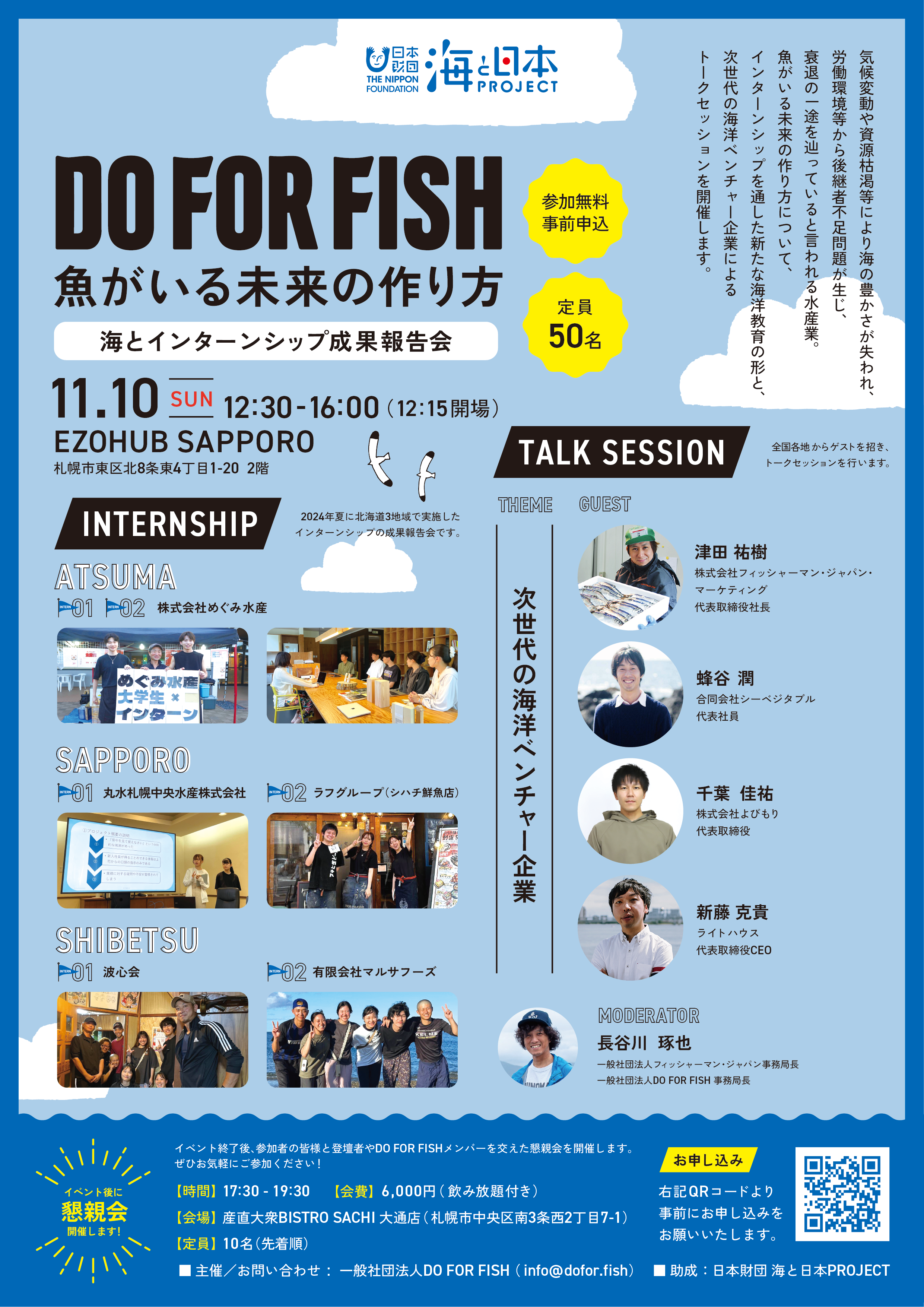 ・「海とインターンシップ」にまつわる企業インタビュー調査報告書(CANPAN登録) ・報告書大学生200名の海洋分野への関心や社会課題に対する意識を調査報告書(CANPAN登録) ・DO FOR FISH2024海とインターンメディアRecord(CANPAN登録) ・2024.11.10イベントチラシ(CANPAN登録) ・海とインターンシップ公式サイト ・海とインターンシップ記録ダイジェスト動画(YouTube登録) |