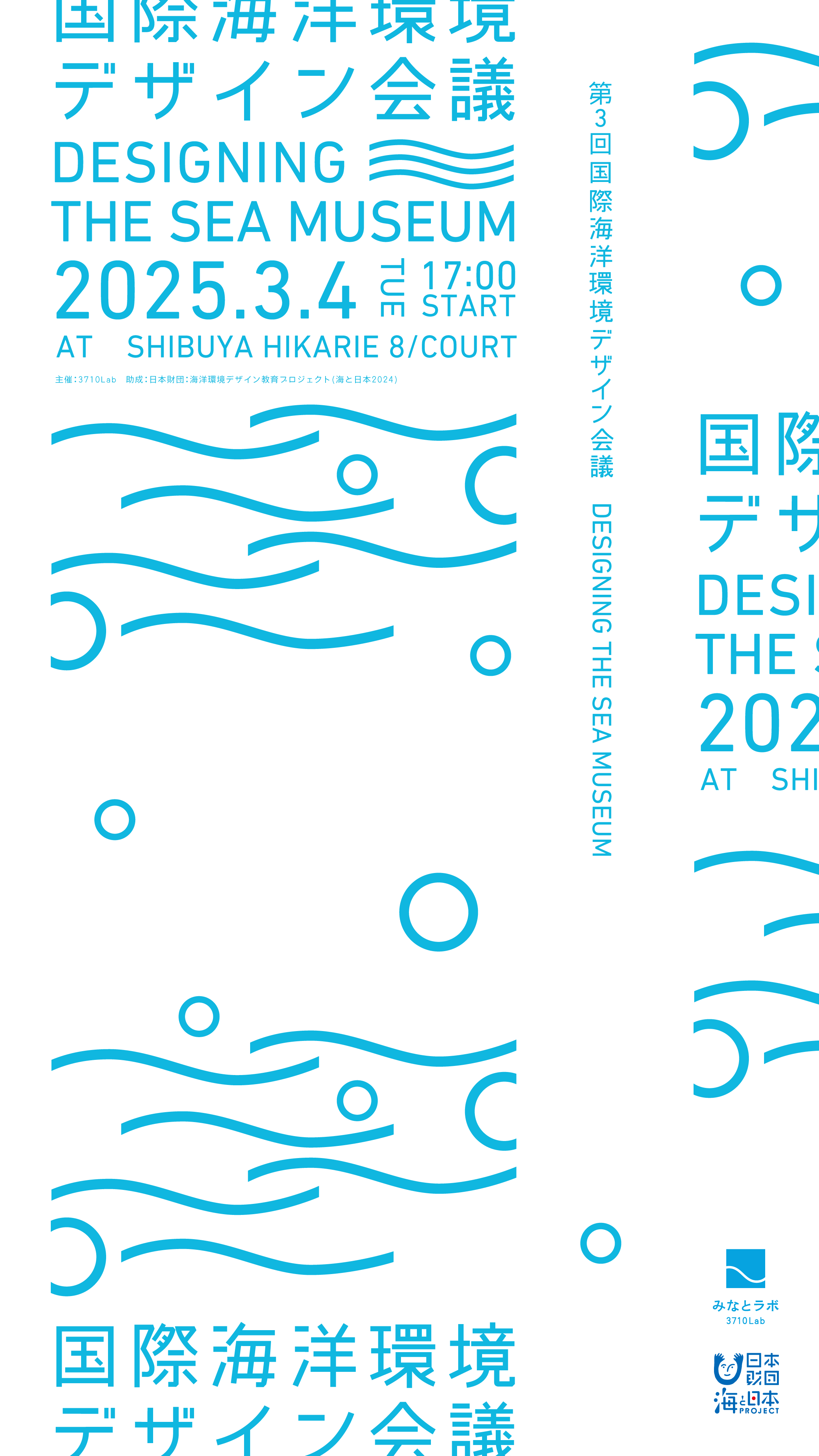 2025年3月4日(火)に開催した「第3回 国際海洋環境デザイン会議」のポスター。本年の会議テーマは「海のミュージアム」をデザイン視点で考えるアイデアソン。海について知りたいこと、実現したいアイデアやプロジェクト、解決したい課題や協業の可能性などを持ち寄り、グループで話し合うワークショップ形式で開催した。