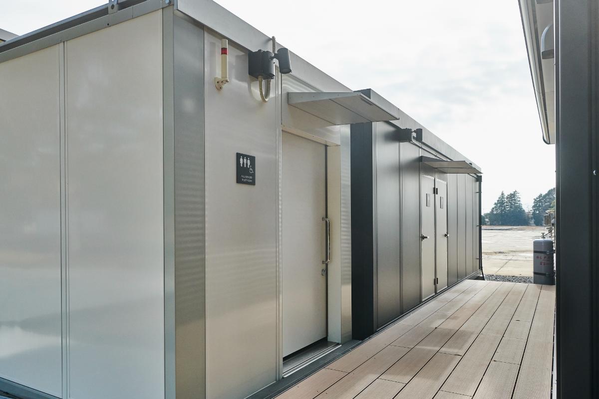 (2)施設名称:日本財団災害ボランティアトレーニングセンター(VTC) (3)場所:茨城県つくば市南原2 (4)面積:敷地12,833.22m2 延床213.72m2(研修棟)、16.68m2(トイレ棟)、7.16m2(ユニバーサルトイレ棟)、188.77m2(ガレージ棟) (5)構造:鉄骨造2階建(研修棟)、鉄骨造平屋建(トイレ棟)、鉄骨造平屋建(ユニバーサルトイレ棟)、鉄骨造平屋建(ガレージ棟) (6)定員:40名 |
