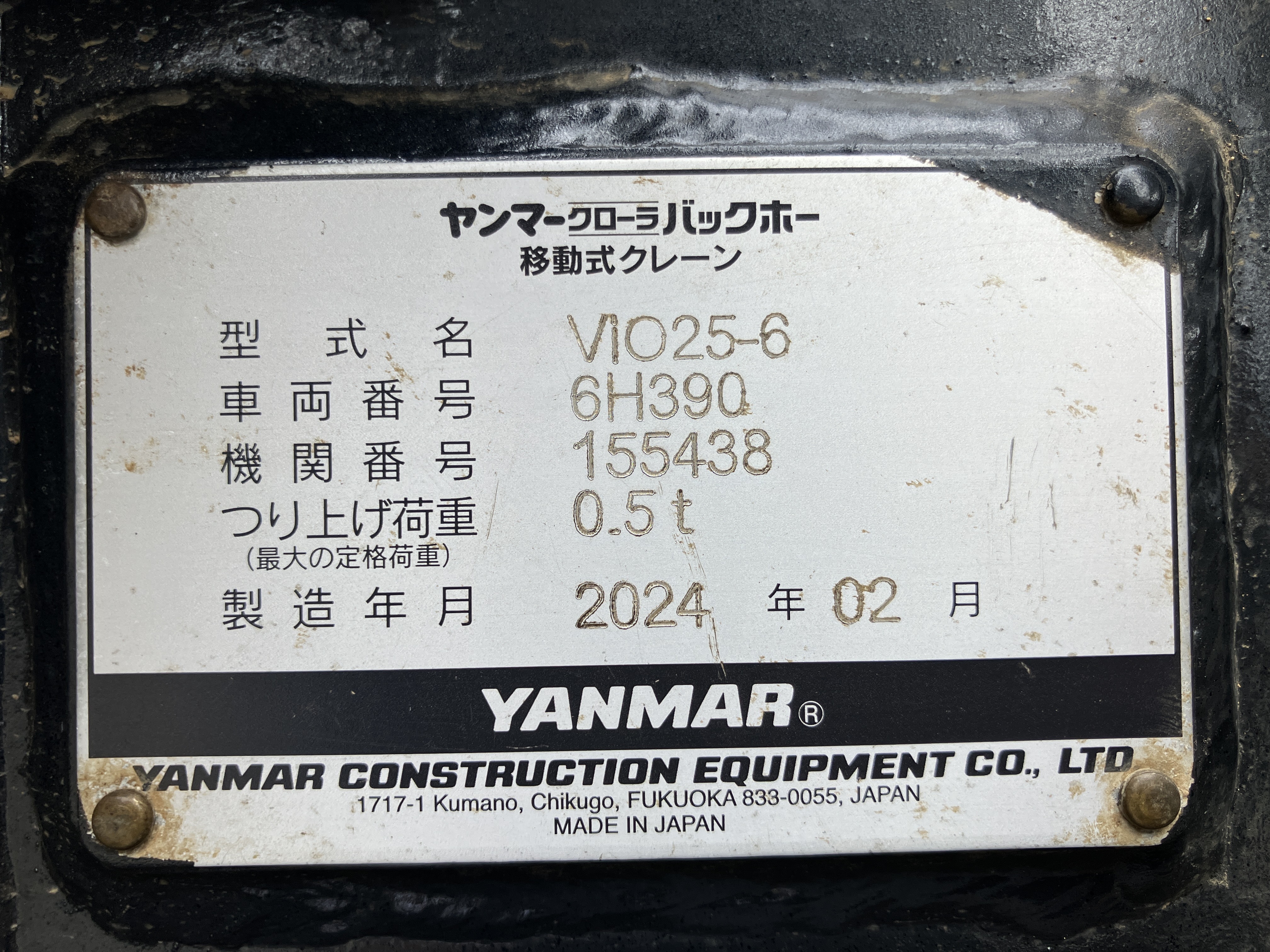 (2)型式:VIO25 (3)機体番号:6H390 (4)配備場所:日本財団災害ボランティアトレーニングセンター(VTC) |