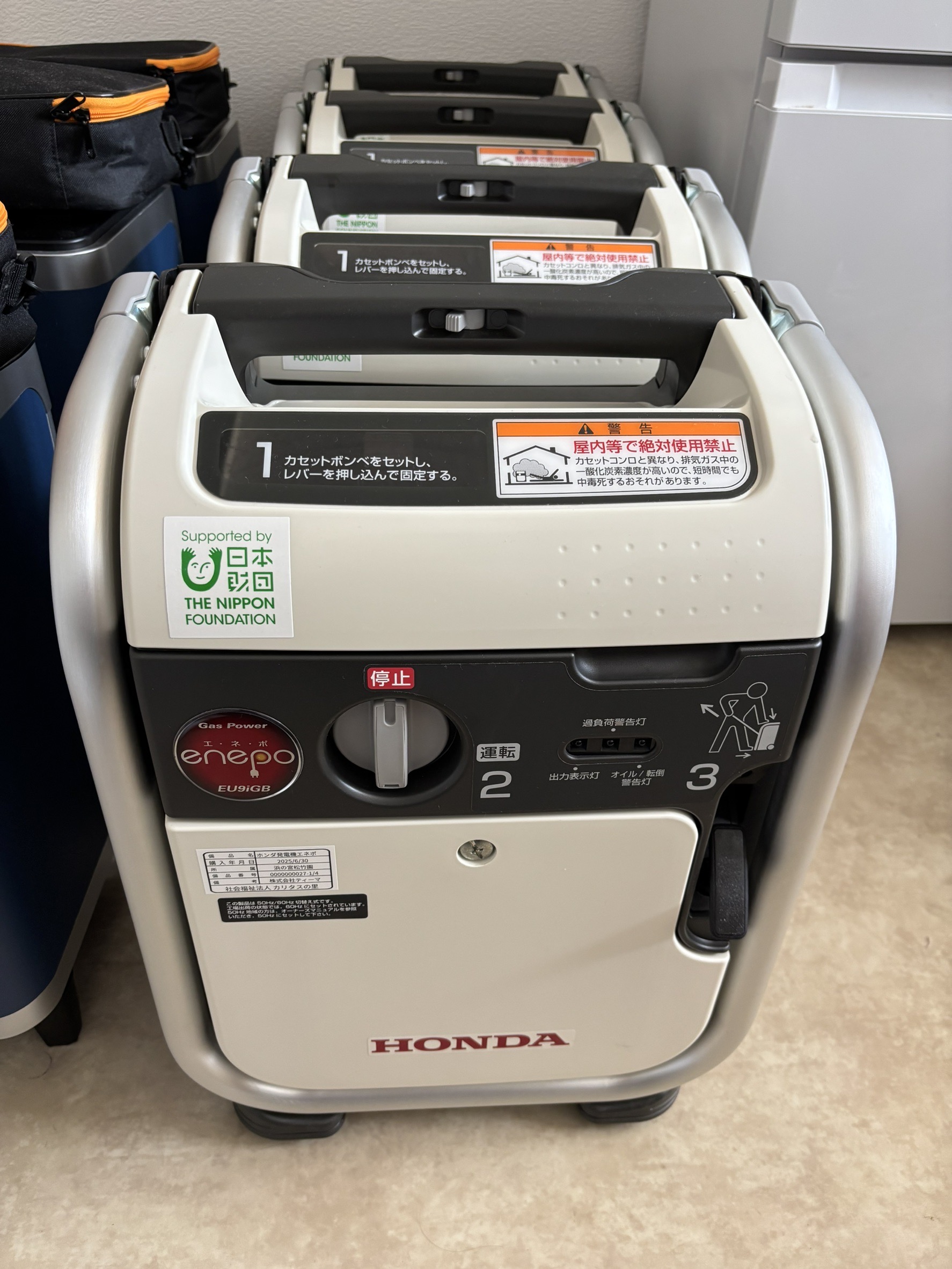 ●発電機(900VA)4台 ●蓄電池(1885wh)3台 ●蓄電池(462wh)4台 発電機およびUPS機能を備えた蓄電池の整備により、急な停電の際に以下のような効果を期待しています。 ・高齢者の生命維持に必要な医療機器の稼働 ・通信確保と情報収集の継続性 ・発電による自立性の強化 ・福祉避難所としての対応力向上 ・可搬性・即応性の高さ |