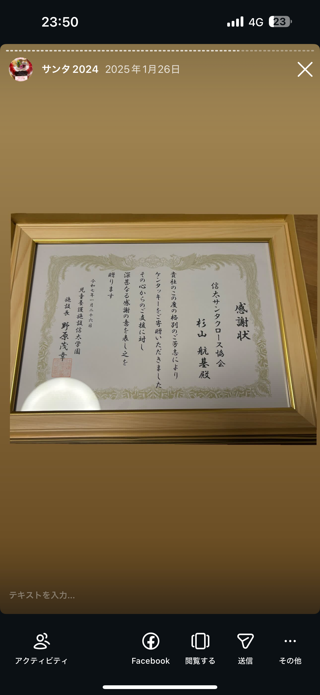 感謝状とお手紙