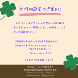 不登校・行き渋り鹿児島 無料相談会(NPO法人くらしを支援する会)