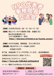 【2/20】NPO代表者・事務局長交流会【岡山NPOセンター】
