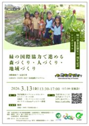3月13日(木)緑の募金法制定30周年記念シンポジウム「緑の国際協力で進める森づくり・人づくり・地域づくり」