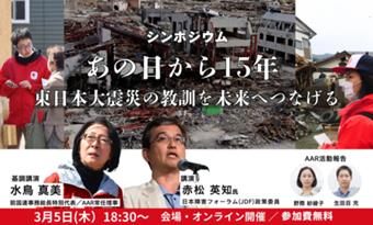 東日本大震災から15年の節目にあたり、AAR Japanは「あの日から15年 東日本大震災の教訓を未来へつなげる」と題したシンポジウムを開催します。