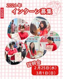 インターンに関する説明会をオンラインで行います。説明会では現役インターンより、シェアの団体説明、インターンの応募方法、業務内容などについてお伝えします。