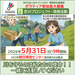 地域の自然環境を守るため、一緒に芝川沿いの清掃活動に参加しませんか?
