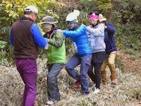 イモ虫になって自然散策。目かくしをすると、自然の感じ方が一変します(ネイチャーゲーム〈目かくしイモ虫〉)